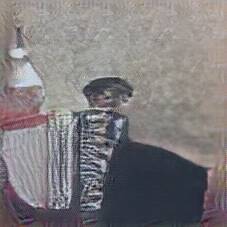 Below are 40 iterations of showing how the neural model learned to represent this class. The visualizations below show the maximally activated representations of what makes Accordion look like Accordion
