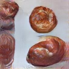 Below are 40 iterations of showing how the neural model learned to represent this class. The visualizations below show the maximally activated representations of what makes Pasca (Romanian Easter Bread) look like Pasca (Romanian Easter Bread)