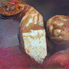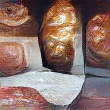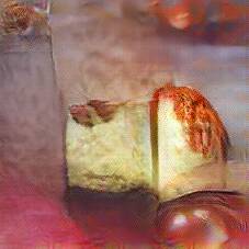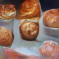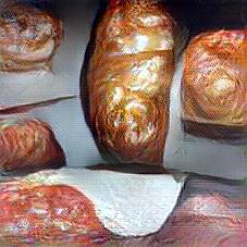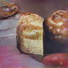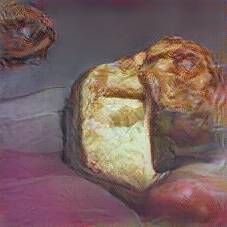 Below are 40 iterations of showing how the neural model learned to represent this class. The visualizations below show the maximally activated representations of what makes Pasca (Romanian Easter Bread) look like Pasca (Romanian Easter Bread)