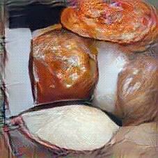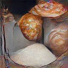 Below are 40 iterations of showing how the neural model learned to represent this class. The visualizations below show the maximally activated representations of what makes Pasca (Romanian Easter Bread) look like Pasca (Romanian Easter Bread)
