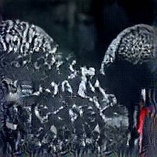 Below are 40 iterations of showing how the neural model learned to represent this class. The visualizations below show the maximally activated representations of what makes Pearly Kings and Queens look like Pearly Kings and Queens