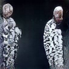 Below are 40 iterations of showing how the neural model learned to represent this class. The visualizations below show the maximally activated representations of what makes Pearly Kings and Queens look like Pearly Kings and Queens