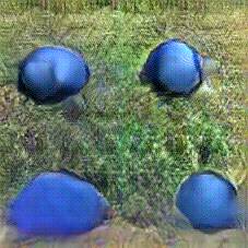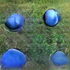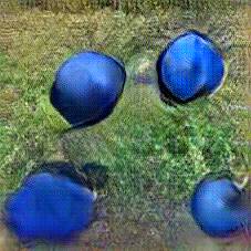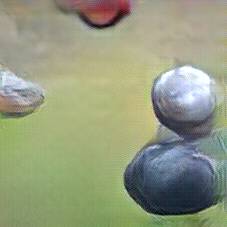 Below are 40 iterations of showing how the neural model learned to represent this class. The visualizations below show the maximally activated representations of what makes Petanque look like Petanque