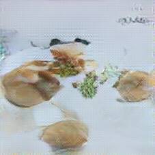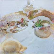 Below are 40 iterations of showing how the neural model learned to represent this class. The visualizations below show the maximally activated representations of what makes Pierogi look like Pierogi