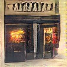 Below are 40 iterations of showing how the neural model learned to represent this class. The visualizations below show the maximally activated representations of what makes Pub look like Pub