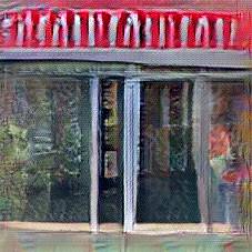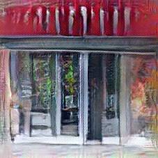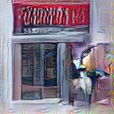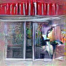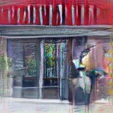 Below are 40 iterations of showing how the neural model learned to represent this class. The visualizations below show the maximally activated representations of what makes Pub look like Pub