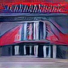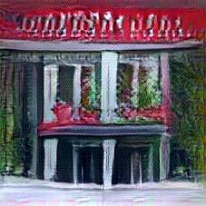 Below are 40 iterations of showing how the neural model learned to represent this class. The visualizations below show the maximally activated representations of what makes Pub look like Pub
