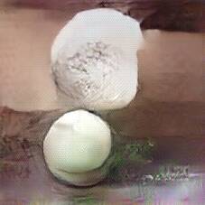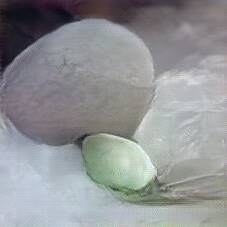 Below are 40 iterations of showing how the neural model learned to represent this class. The visualizations below show the maximally activated representations of what makes Mozzarella look like Mozzarella