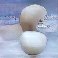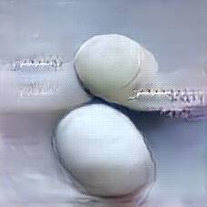 Below are 40 iterations of showing how the neural model learned to represent this class. The visualizations below show the maximally activated representations of what makes Mozzarella look like Mozzarella