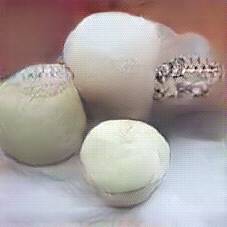 Below are 40 iterations of showing how the neural model learned to represent this class. The visualizations below show the maximally activated representations of what makes Mozzarella look like Mozzarella