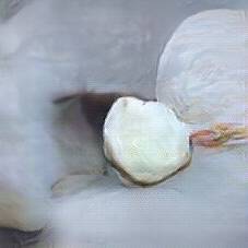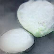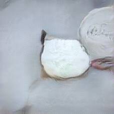 Below are 40 iterations of showing how the neural model learned to represent this class. The visualizations below show the maximally activated representations of what makes Mozzarella look like Mozzarella