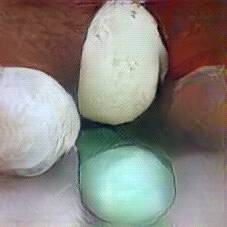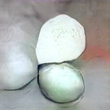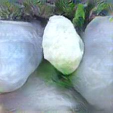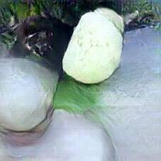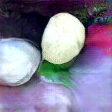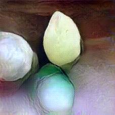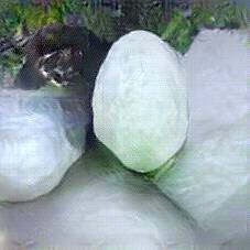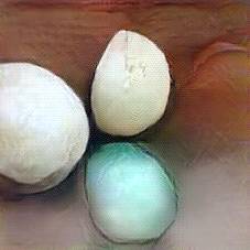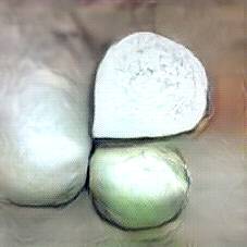 Below are 40 iterations of showing how the neural model learned to represent this class. The visualizations below show the maximally activated representations of what makes Mozzarella look like Mozzarella