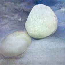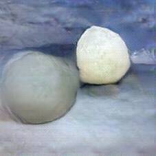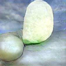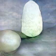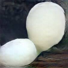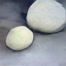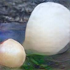 Below are 40 iterations of showing how the neural model learned to represent this class. The visualizations below show the maximally activated representations of what makes Mozzarella look like Mozzarella