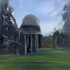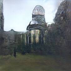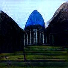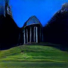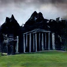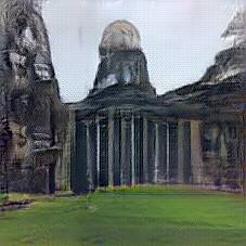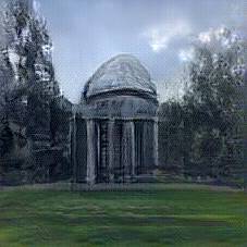 Below are 40 iterations of showing how the neural model learned to represent this class. The visualizations below show the maximally activated representations of what makes Reichstag look like Reichstag