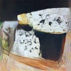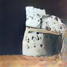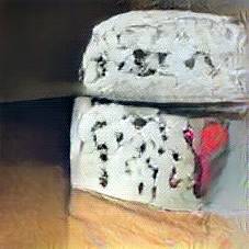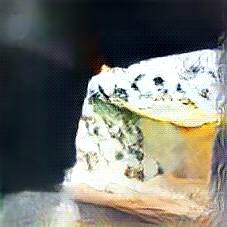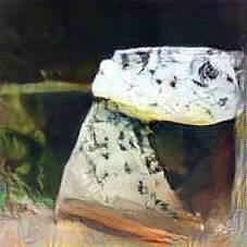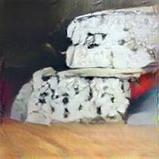 Below are 40 iterations of showing how the neural model learned to represent this class. The visualizations below show the maximally activated representations of what makes Roquefort look like Roquefort