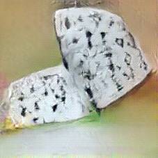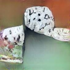 Below are 40 iterations of showing how the neural model learned to represent this class. The visualizations below show the maximally activated representations of what makes Roquefort look like Roquefort