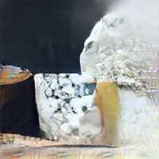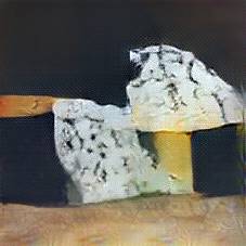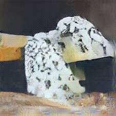 Below are 40 iterations of showing how the neural model learned to represent this class. The visualizations below show the maximally activated representations of what makes Roquefort look like Roquefort