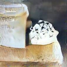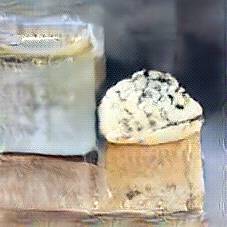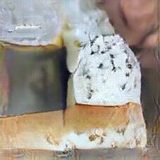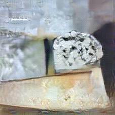 Below are 40 iterations of showing how the neural model learned to represent this class. The visualizations below show the maximally activated representations of what makes Roquefort look like Roquefort