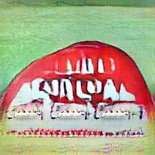 Below are 40 iterations of showing how the neural model learned to represent this class. The visualizations below show the maximally activated representations of what makes Rugby Ball look like Rugby Ball