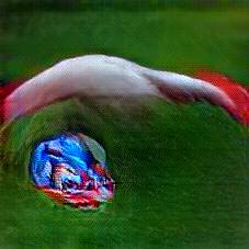 Below are 40 iterations of showing how the neural model learned to represent this class. The visualizations below show the maximally activated representations of what makes Rugby Ball look like Rugby Ball
