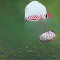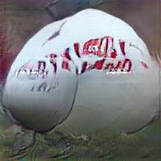 Below are 40 iterations of showing how the neural model learned to represent this class. The visualizations below show the maximally activated representations of what makes Rugby Ball look like Rugby Ball