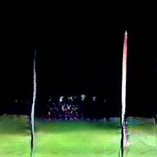 Below are 40 iterations of showing how the neural model learned to represent this class. The visualizations below show the maximally activated representations of what makes Rugby Posts look like Rugby Posts
