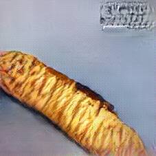 Below are 40 iterations of showing how the neural model learned to represent this class. The visualizations below show the maximally activated representations of what makes Saratele Romnian Bread Sticks look like Saratele Romnian Bread Sticks