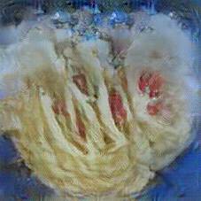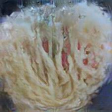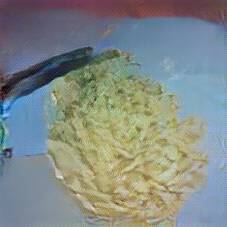 Below are 40 iterations of showing how the neural model learned to represent this class. The visualizations below show the maximally activated representations of what makes Sauerkraut look like Sauerkraut
