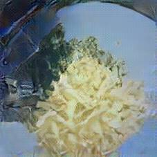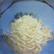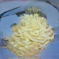 Below are 40 iterations of showing how the neural model learned to represent this class. The visualizations below show the maximally activated representations of what makes Sauerkraut look like Sauerkraut