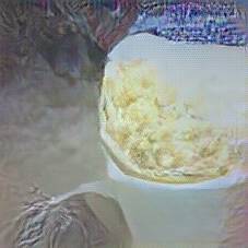 Below are 40 iterations of showing how the neural model learned to represent this class. The visualizations below show the maximally activated representations of what makes Sauerkraut look like Sauerkraut