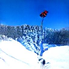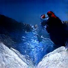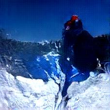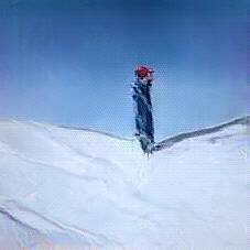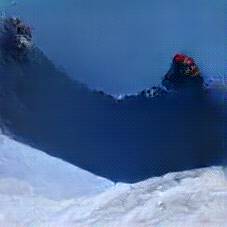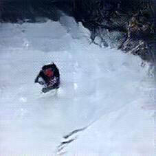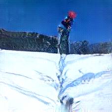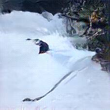 Below are 40 iterations of showing how the neural model learned to represent this class. The visualizations below show the maximally activated representations of what makes Skiing look like Skiing