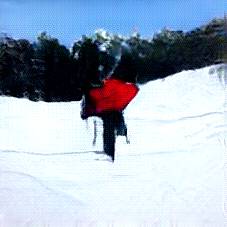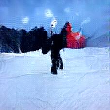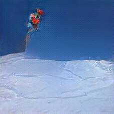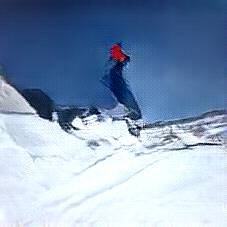 Below are 40 iterations of showing how the neural model learned to represent this class. The visualizations below show the maximally activated representations of what makes Skiing look like Skiing