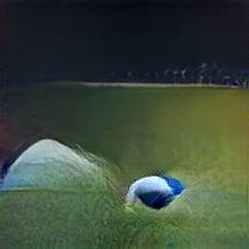 Below are 40 iterations of showing how the neural model learned to represent this class. The visualizations below show the maximally activated representations of what makes Football look like Football