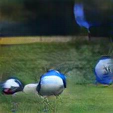 Below are 40 iterations of showing how the neural model learned to represent this class. The visualizations below show the maximally activated representations of what makes Football look like Football
