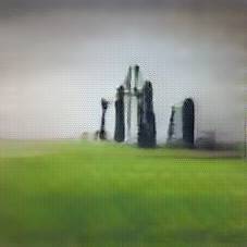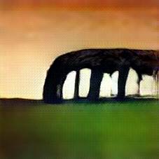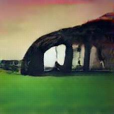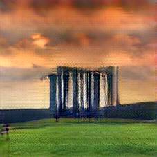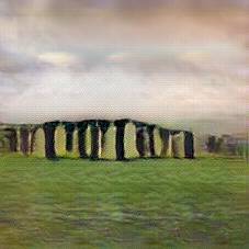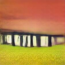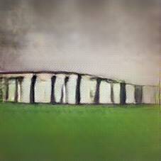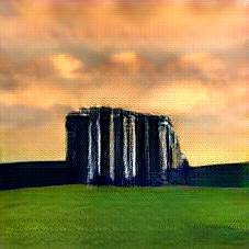 Below are 40 iterations of showing how the neural model learned to represent this class. The visualizations below show the maximally activated representations of what makes Stonehenge look like Stonehenge
