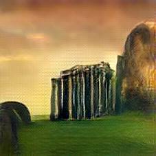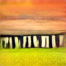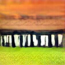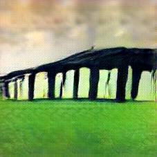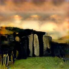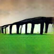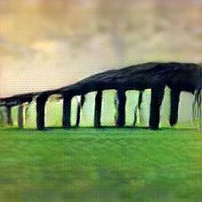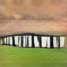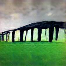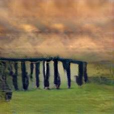 Below are 40 iterations of showing how the neural model learned to represent this class. The visualizations below show the maximally activated representations of what makes Stonehenge look like Stonehenge