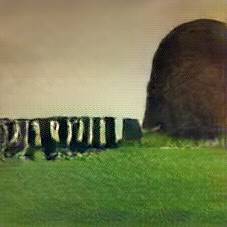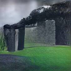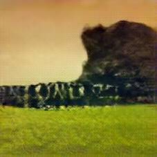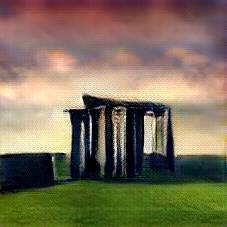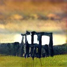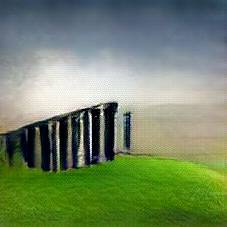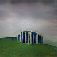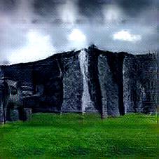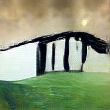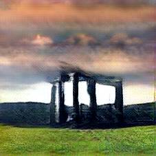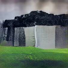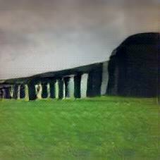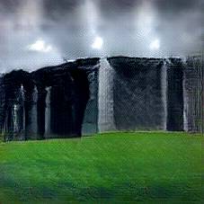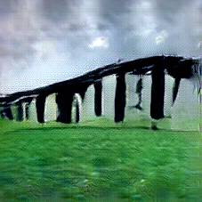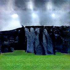 Below are 40 iterations of showing how the neural model learned to represent this class. The visualizations below show the maximally activated representations of what makes Stonehenge look like Stonehenge