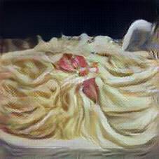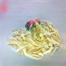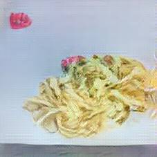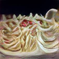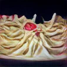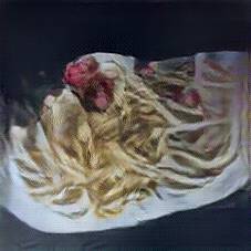 Below are 40 iterations of showing how the neural model learned to represent this class. The visualizations below show the maximally activated representations of what makes Tagliatelle look like Tagliatelle