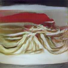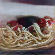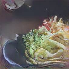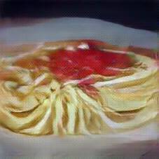 Below are 40 iterations of showing how the neural model learned to represent this class. The visualizations below show the maximally activated representations of what makes Tagliatelle look like Tagliatelle