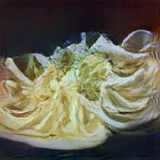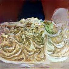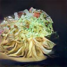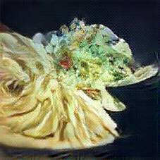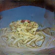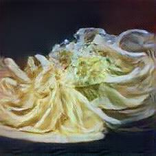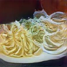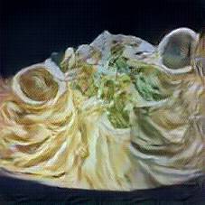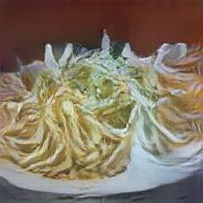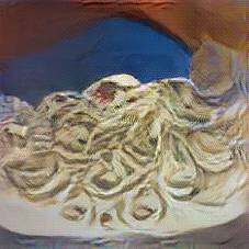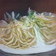 Below are 40 iterations of showing how the neural model learned to represent this class. The visualizations below show the maximally activated representations of what makes Tagliatelle look like Tagliatelle