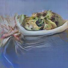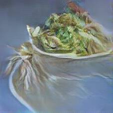 Below are 40 iterations of showing how the neural model learned to represent this class. The visualizations below show the maximally activated representations of what makes Tagliatelle look like Tagliatelle