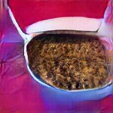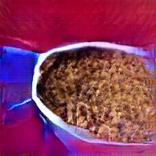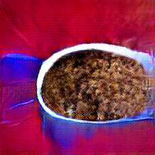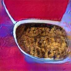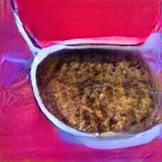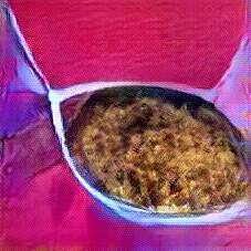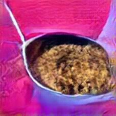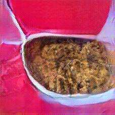 Below are 40 iterations of showing how the neural model learned to represent this class. The visualizations below show the maximally activated representations of what makes Bigos (Hunter's Stew) look like Bigos (Hunter's Stew)