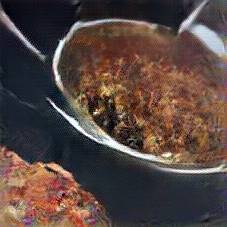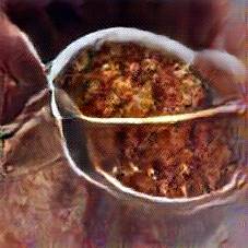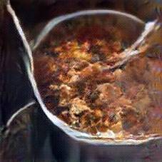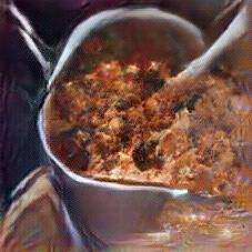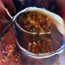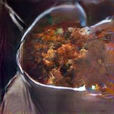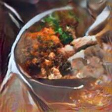 Below are 40 iterations of showing how the neural model learned to represent this class. The visualizations below show the maximally activated representations of what makes Bigos (Hunter's Stew) look like Bigos (Hunter's Stew)