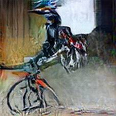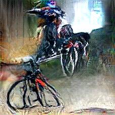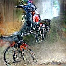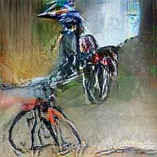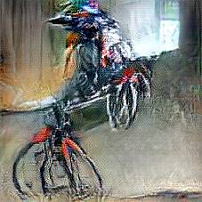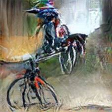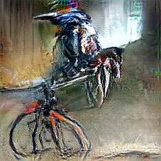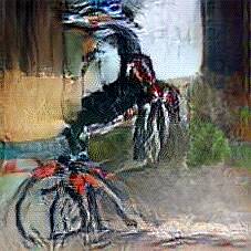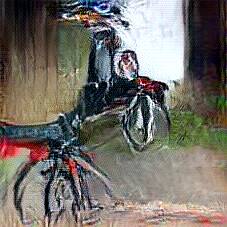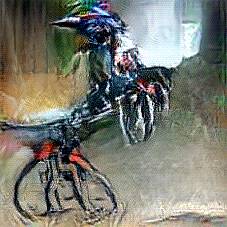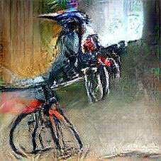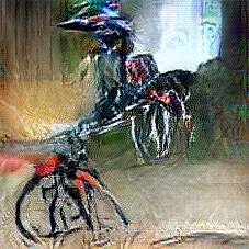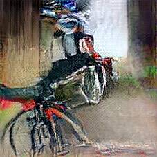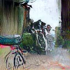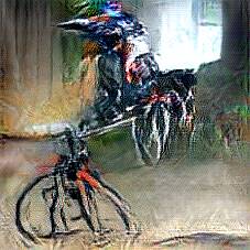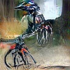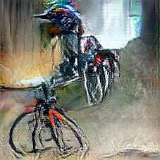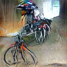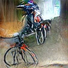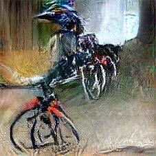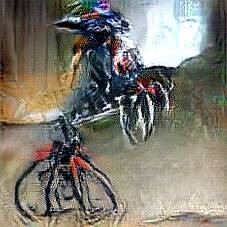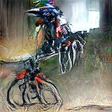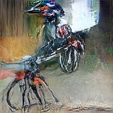 Below are 40 iterations of showing how the neural model learned to represent this class. The visualizations below show the maximally activated representations of what makes Bicycle look like Bicycle