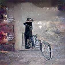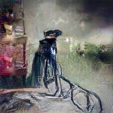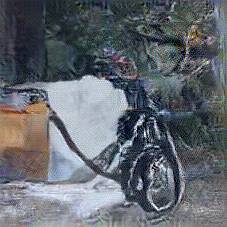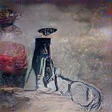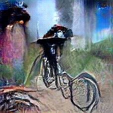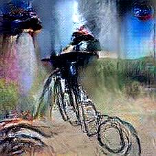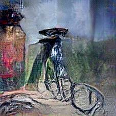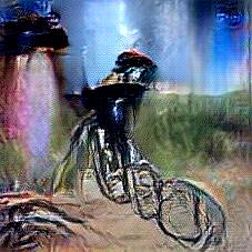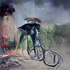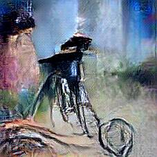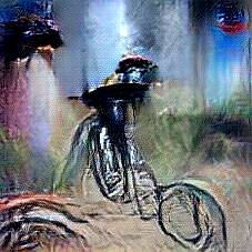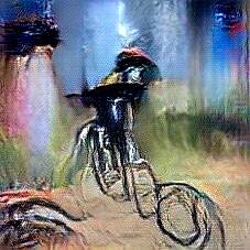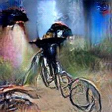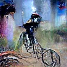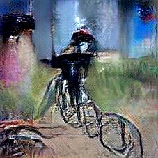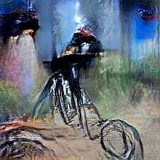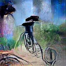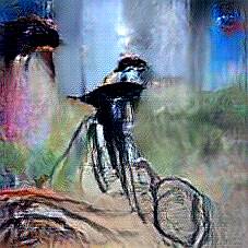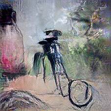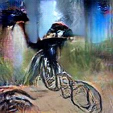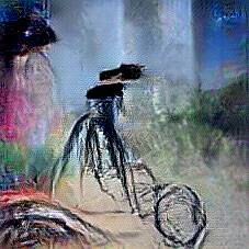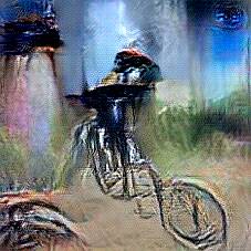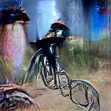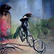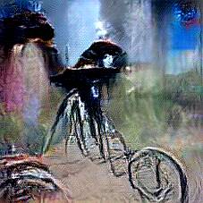 Below are 40 iterations of showing how the neural model learned to represent this class. The visualizations below show the maximally activated representations of what makes Bicycle look like Bicycle