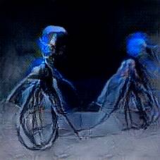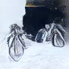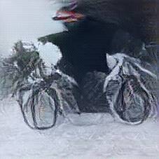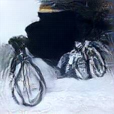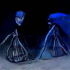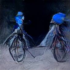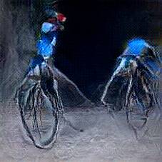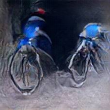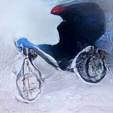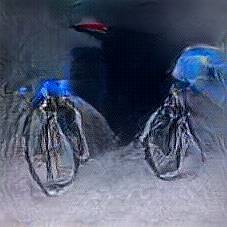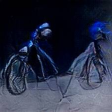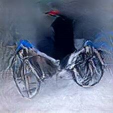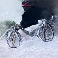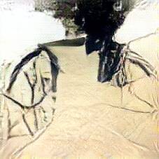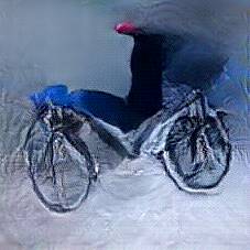 Below are 40 iterations of showing how the neural model learned to represent this class. The visualizations below show the maximally activated representations of what makes Bicycle look like Bicycle