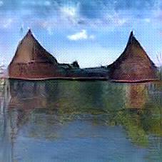 Below are 40 iterations of showing how the neural model learned to represent this class. The visualizations below show the maximally activated representations of what makes Trakai Island Castle look like Trakai Island Castle