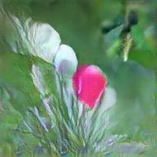 Below are 40 iterations of showing how the neural model learned to represent this class. The visualizations below show the maximally activated representations of what makes Tulpen look like Tulpen