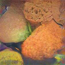 Below are 40 iterations of showing how the neural model learned to represent this class. The visualizations below show the maximally activated representations of what makes Wiener Schnitzel look like Wiener Schnitzel