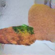 This class was learned from 109 images of Wiener Schnitzel. The visualizations below show the maximally activated representations of what makes Wiener Schnitzel look like Wiener Schnitzel. Each image begins with a randomly-seeded noise image, which leads to a slightly different class representation. Below are 12 activations created from 12 random noise images.